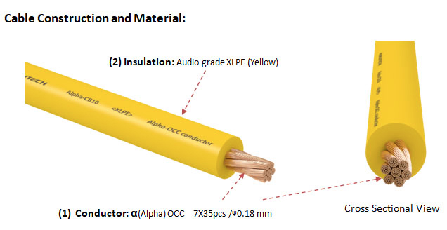 OCC α (Alpha) společnosti Furutech je jedním z několika vybraných vodičů, u kterých inženýři společnosti Furutech zjistili, že mají vynikající reprodukci zvuku. α(Alpha) OCC se vyrábí z vysoce čisté bezkyslíkaté monokrystalické mědi speciálním procesem lití. Na rozdíl od běžného OFC byly téměř všechny nečistoty v tomto vysoce čistém OCC odstraněny na úrovni mikronů ve speciálním procesu lití.
